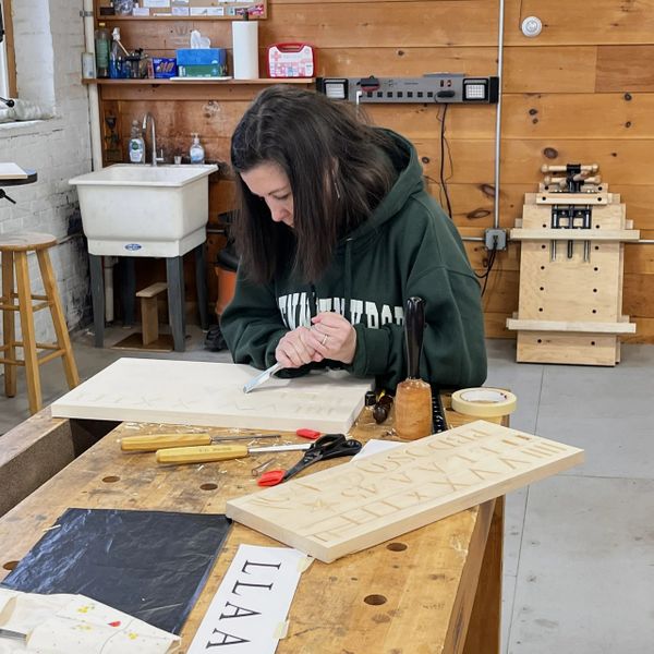 This 2-day workshop is designed to cover the foundational skills for letter carving in wood. Using Roman style lettering as the guide, students will learn how to carve straight, curved, and combined letters and numbers with serifs. There will also be an introduction to elegant script lettering. Topics and discussions will include: layout and design; tool selection; wood grain orientation; and the foundational techniques of letter carving. In addition to the introductory and practice exercises, students will create a “Welcome” sign.